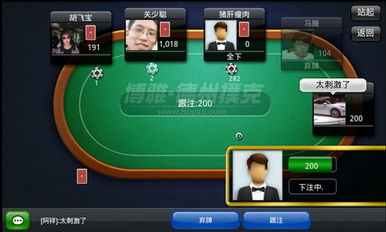 風靡歐美的德州撲克是當前全球最熱門的撲克遊戲。以其易學難精的特點在世界上吸引並凝聚了大量的忠實玩家。博雅德州撲克在此基礎上設計出了相應的android版本的手機遊戲,採用簡潔大方的介面,快捷的操作模式,讓玩家在手機上也能快速適應德州撲克的各種玩法和體驗到它的精髓。