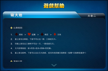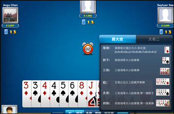 博雅大老二HD版本是專為iPad用戶量身定做的大老二撲克遊戲。該遊戲在坊間十分流行,這個遊戲規定最大的數字是2,所以就順口叫大老二。大老二又叫鋤大地,群眾基礎廣泛玩法簡單刺激,易於學習,老少皆宜,但想要獲得勝利卻需要更多的思考和判斷,是一種頗有經濟型的智力遊戲。